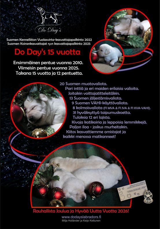 Pieni kennellimme palkittiin vuoden 2025 aikana