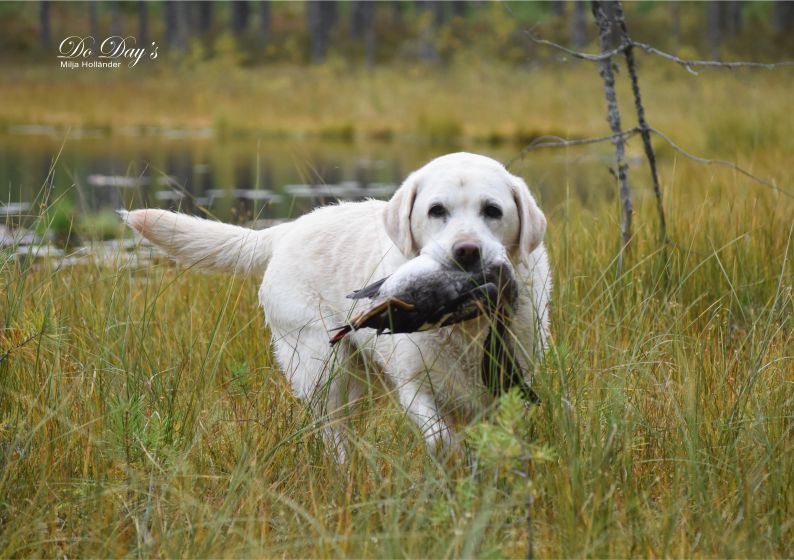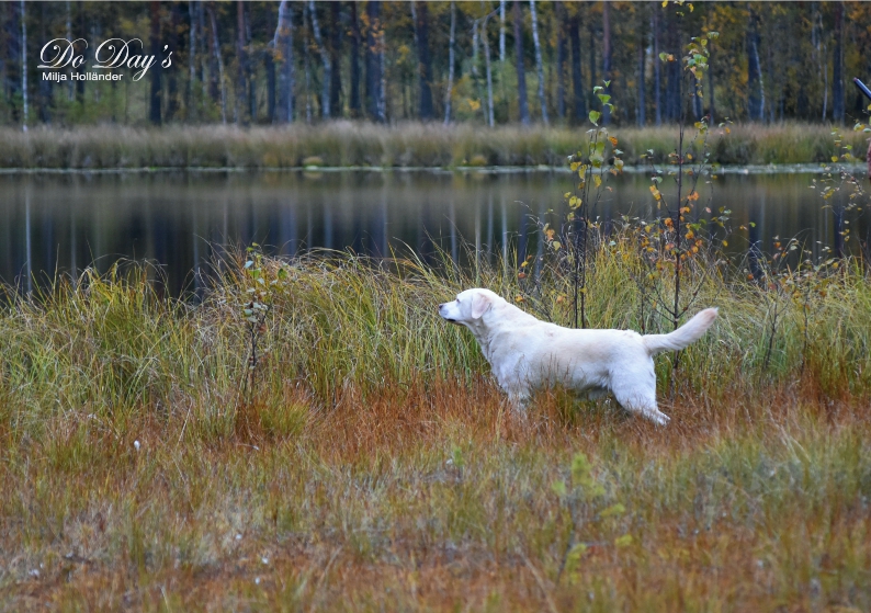 Nuorehko, tasaisella vauhdilla työskentelevä koira, joka tekee hyvän vesi- ja hakutyön.